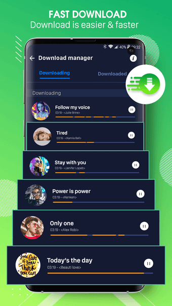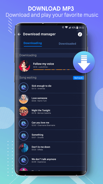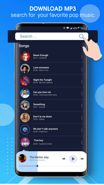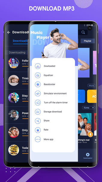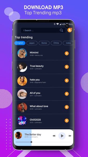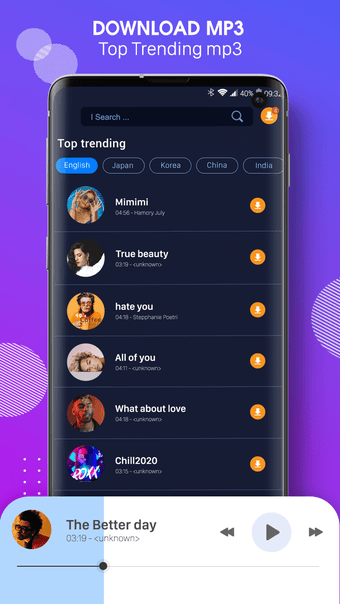 音楽ダウンローダー-無料のMp3ダウンローダーは、MP3をダウンロードするための無料のアプリケーションです。アプリケーションは、プレイリストを国、ジャンル、曲名で並べ替えて取得します。新しい曲と最新の曲がリアルタイムで更新されます。